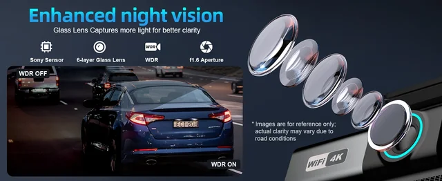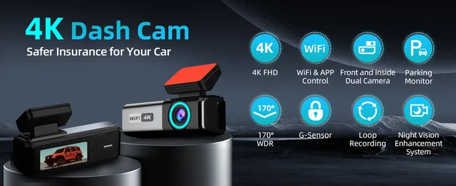 داش كام عدسة مزدوجة 4K UHD تسجيل كاميرا السيارة DVR