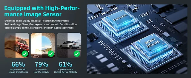 تعد شرائح Novatek من الدرجات الأولى في مجال مسجلات القيادة، خاصة معالج Novatek 96675 السريع، الذي يؤدي أداءً جيدًا بشكل خاص.لا يمكنه معالجة مقاطع الفيديو والصور بكفاءة فحسب، بل يمكنه أيضًا توفير إطارات بدقة 4K 30 على المستوى الاحترافي لكل فيديو ثانية وصور بدقة 12 مليون بكسل (12 ميجابكسل)، بدقة أربعة أضعاف دقة 1080P التقليدية.تم تجهيز المعالج بمستشعر إضاءة منخفض للغاية ويمكنه دمجه مع مستشعر Sony IMX415PL تقديم تأثيرات فيديو ممتازة للرؤية الليلية بسهولة.هذا الأداء الاستثنائي والعرض التقديمي الدقيق يجعله فريدًا في السوق.